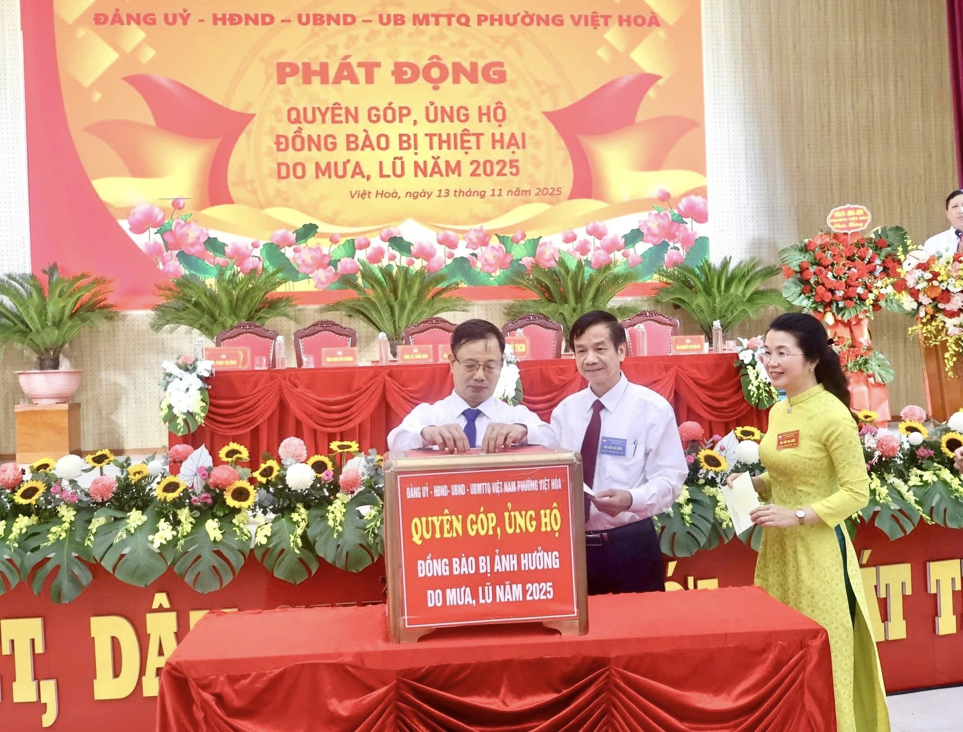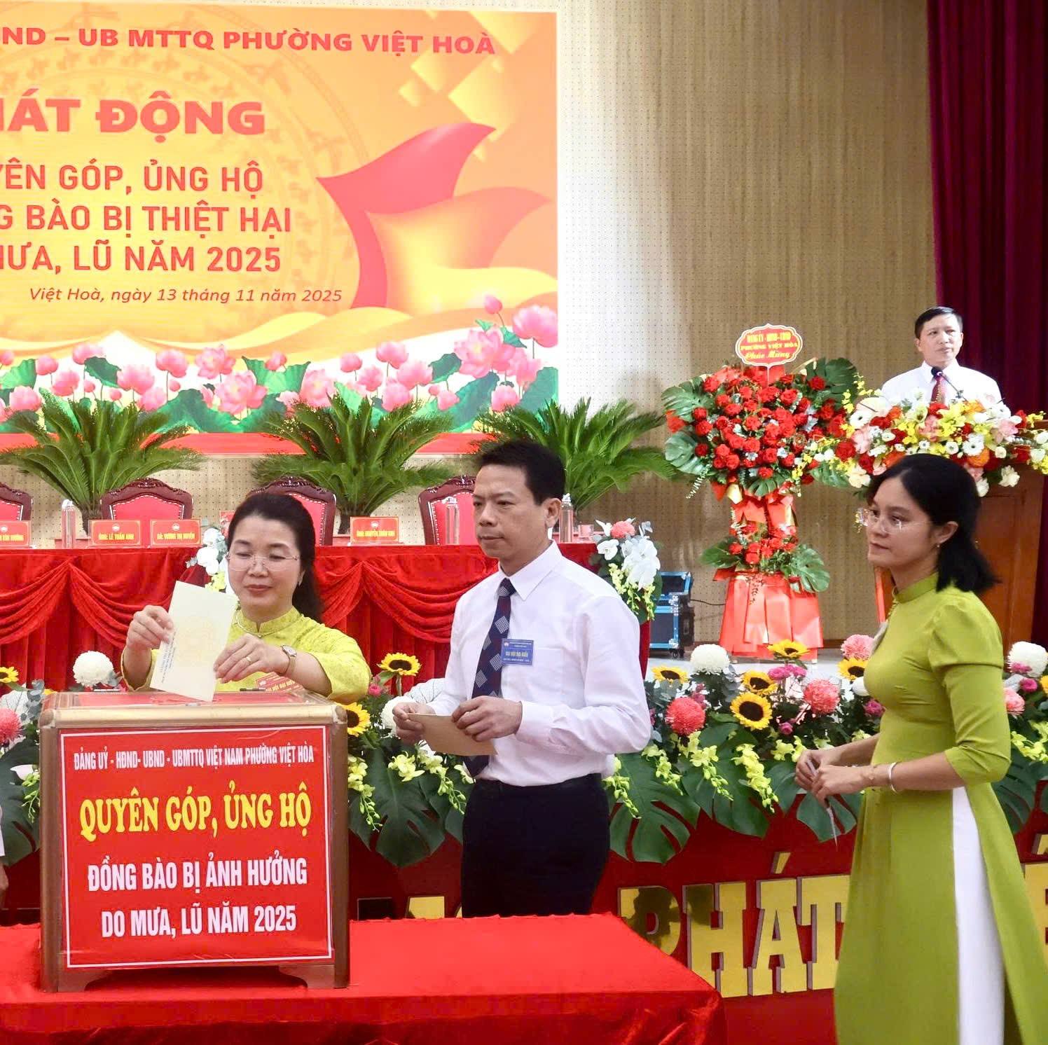 Chiều ngày 13/10, hưởng ứng lời kêu gọi của Ủy ban Trung ương MTTQ Việt Nam và Ủy ban MTTQ thành phố Hải Phòng, Đảng ủy - HĐND - UBND - Uỷ ban MTTQ phường Việt Hoà tổ chức phát động , quyên góp ủng hộ đồng bào bị thiệt hại do mưa lũ năm 2025.