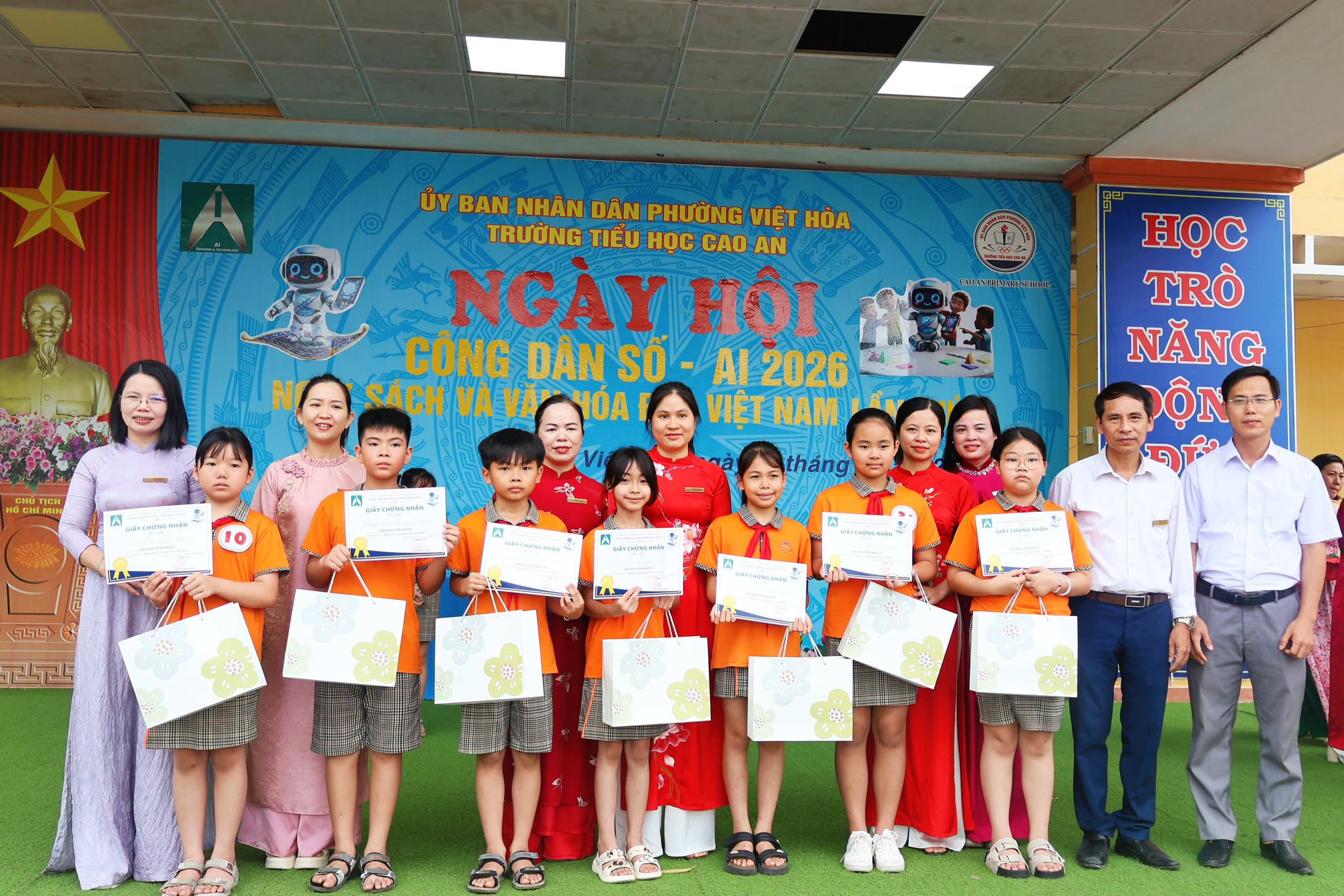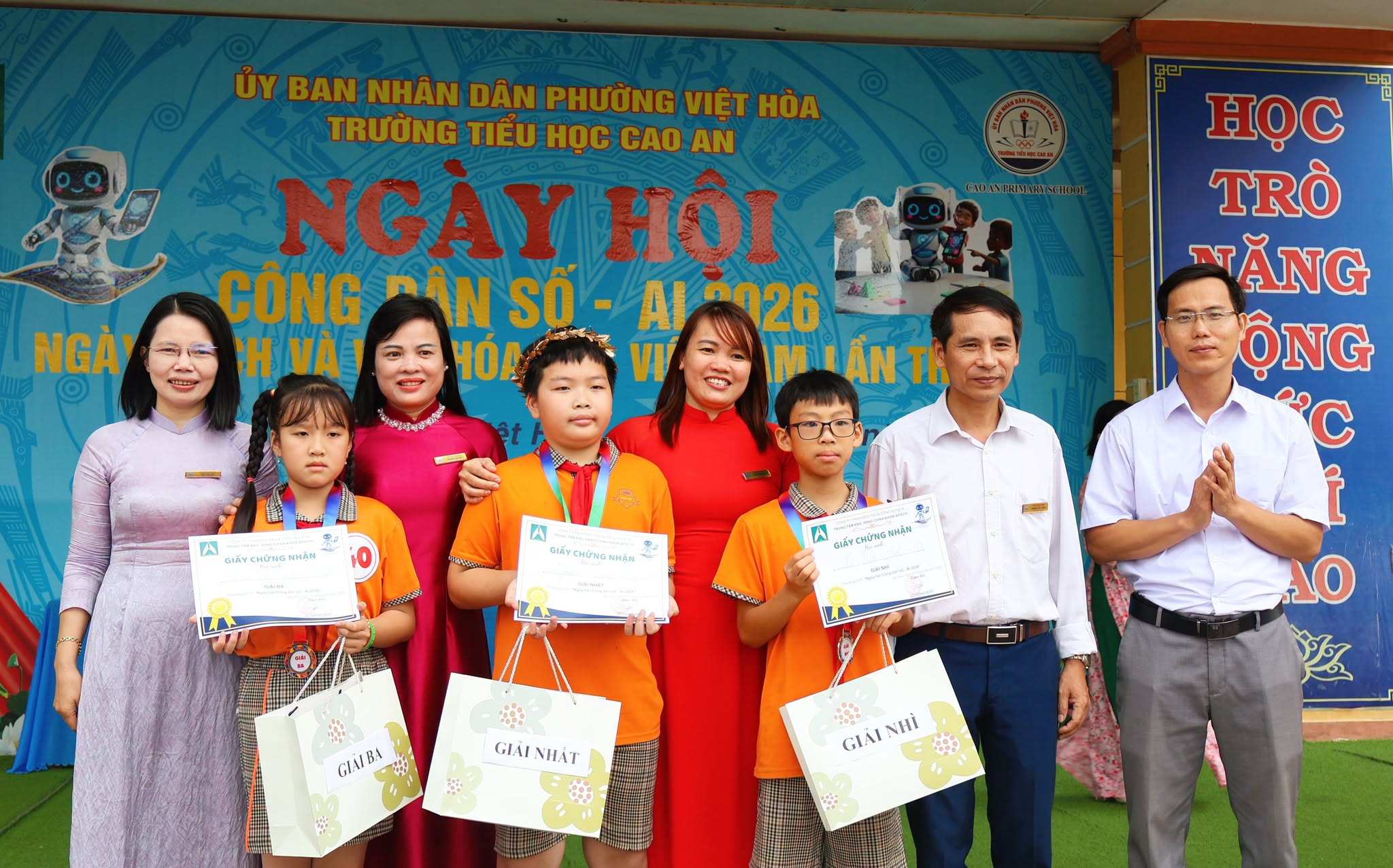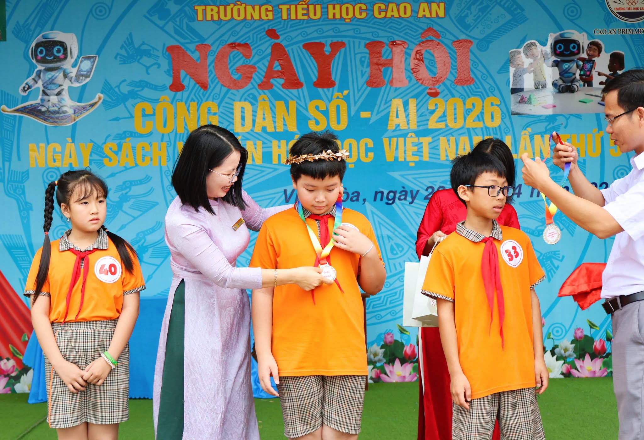 Sáng ngày 20/4, Trường Tiểu học Cao An phối hợp với Trung tâm Kỹ năng sống, Hoạt động ngoài giờ chính khóa AITECH tổ chức “Ngày hội Công dân số - AI 2026” gắn với Ngày Sách và Văn hóa đọc Việt Nam lần thứ V.