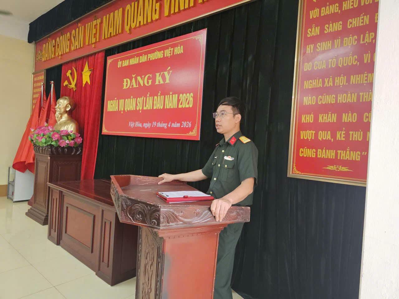 Thực hiện Luật Nghĩa vụ quân sự và các văn bản hướng dẫn thi hành, trong thời gian qua, Ban Chỉ huy Quân sự (CHQS) Phường Việt Hòa đã chủ động tham mưu cho cấp ủy, chính quyền địa phương tổ chức triển khai đăng ký nghĩa vụ quân sự lần đầu cho công dân nam đủ 17 tuổi trên địa bàn năm 2026 bảo đảm chặt chẽ, đúng quy định.