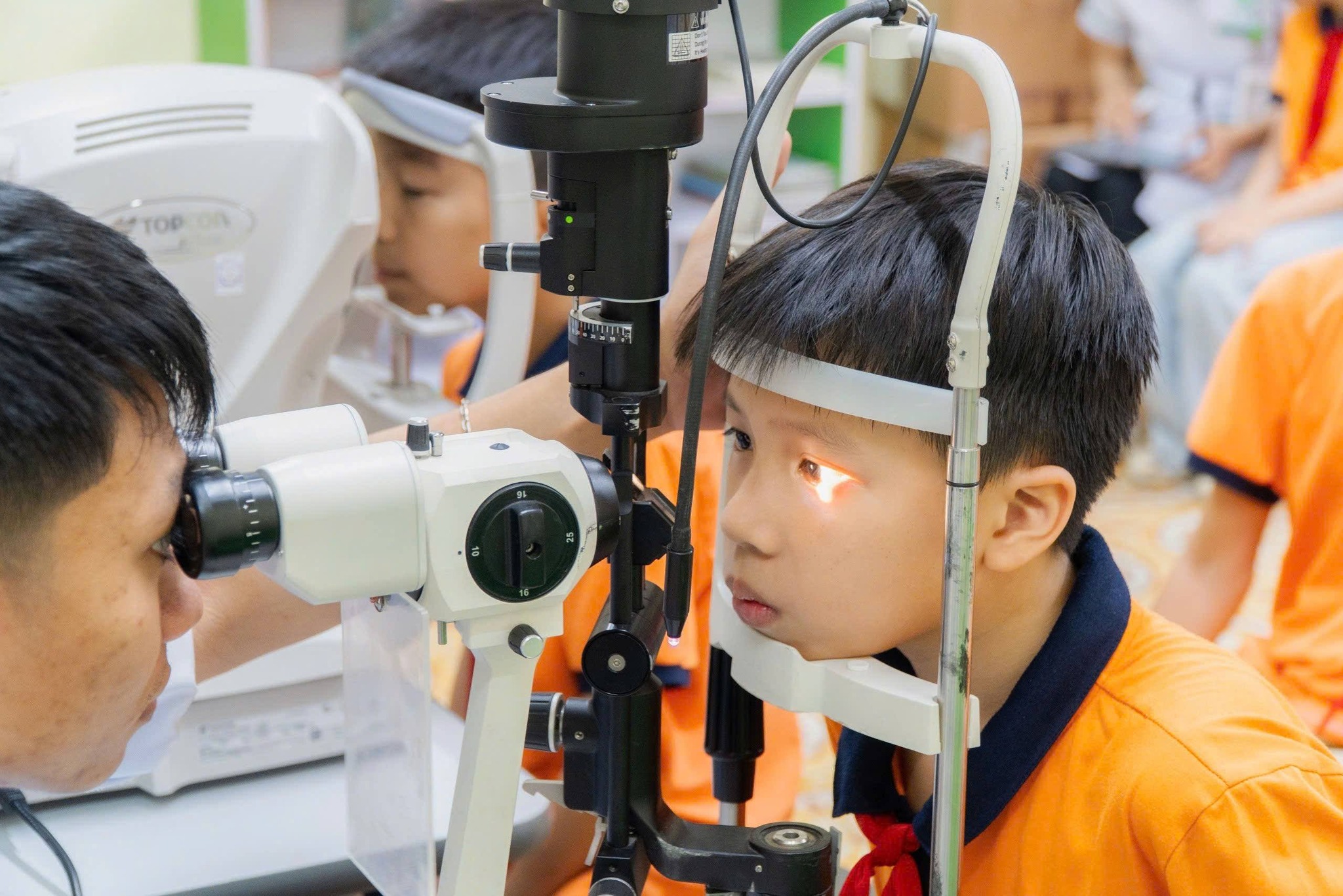 Tham gia chương trình, các em học sinh được đội ngũ y bác sĩ chuyên khoa mắt trực tiếp thăm khám, kiểm tra thị lực và tư vấn về tình trạng sức khỏe mắt. Qua đó, giúp phát hiện sớm các tật khúc xạ như cận thị, loạn thị, đồng thời đưa ra những khuyến nghị phù hợp cho từng trường hợp.